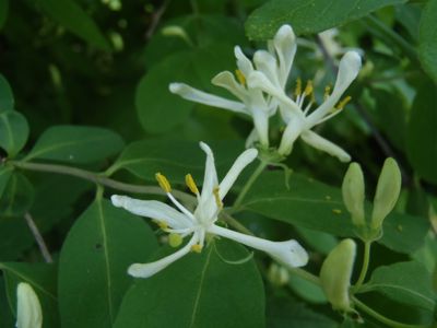 珍しい花がたくさんあって、飽きない。これはスイカズラ。