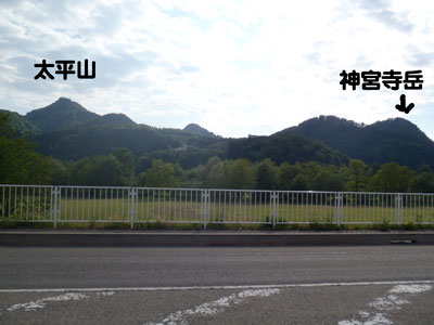 雄物川を挟んだ向こうに尖った山が見えてくる。