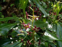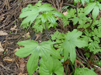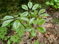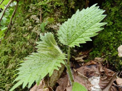 ややキツイ登りだが、その脇にはユーモラスな花のホトトギスの葉が