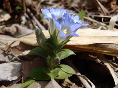 今の季節、半端に雪がある高い山より里山の方が魅力的ですね。 山菜もあるし、花もある。リンドウまで咲いているとは意外でした。