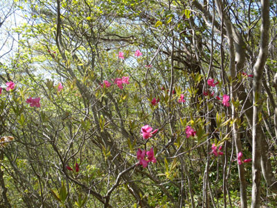 ムラサキヤシオが咲く稜線を、展望台方向へ下山していく。