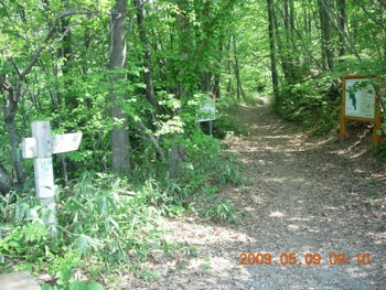 駐車場から少しだけ林道を歩くと、登山者記入場所があり