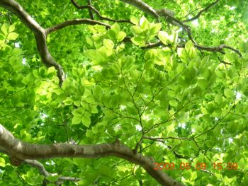 あげると、新緑が青空を埋めてサワサワと揺れている。