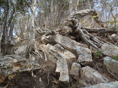 岩だらけの山頂は、ブナやナラは生育できないらしく、