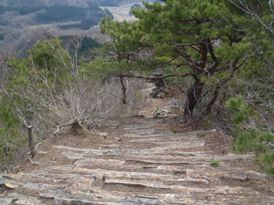 登っていると気づかないが、振り還ってみるとほとんど崖。