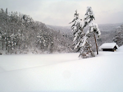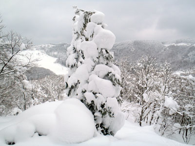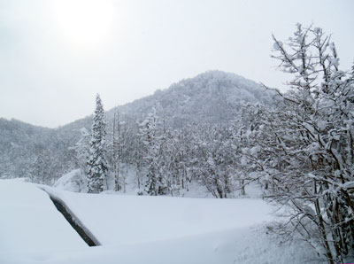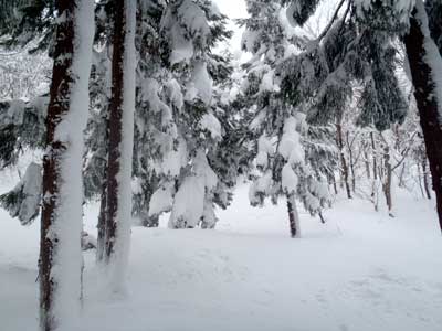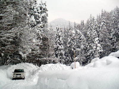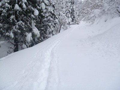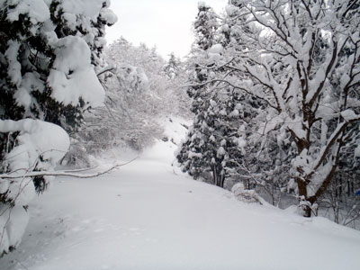 ふっかふかの新雪の林道。