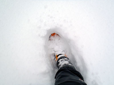 新雪が着いた斜面は、スノーシューでは