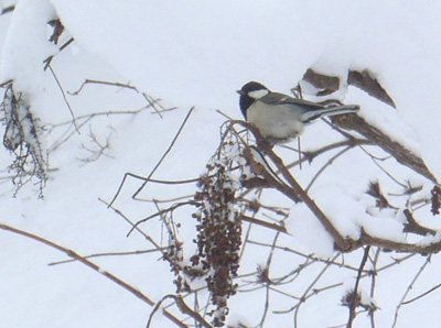 シジュウカラが、鳴きながらせわしなく
