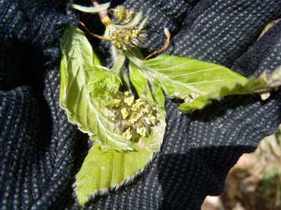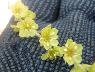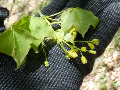 ウリハダカエデの花。ぷら〜っと垂れ下がっている小さい花。
