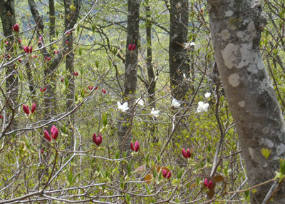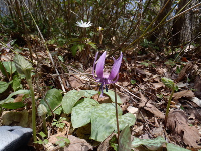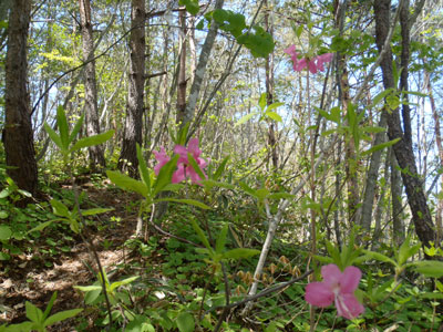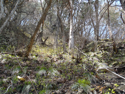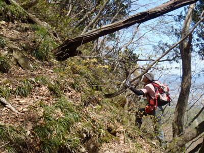 帰りの林道歩きは、ところどころで薮こぎすれば