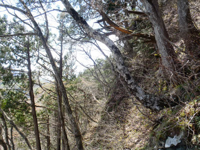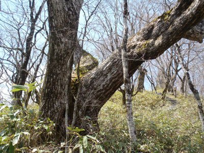 狭い尾根に頑張って根を張って、枝を広げていた。