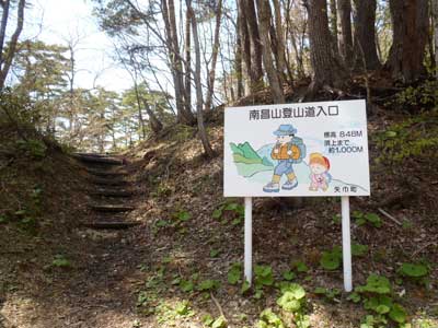 旧ルートの登山口へ。南昌山神社そばにその登山口がある。
