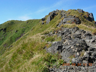 男岳はずっとごつごつした岩だらけの登山道。 なるほど名前の通り男性的。 見下ろす噴火口から吹き出した岩が積み重なったんだろう。 一帯が広大な噴火口だった。 ←◆男岳山頂まであと一息!◆