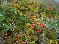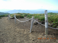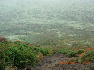 紅葉の小道にとても気分がいい。行く手の焼森はそんな四季の恵みに見放されたようながら〜んとした場所。とはいえ、近付くと健気に生きる植物はいる。そういえば数年前、八合目から笹森へ向って焼森にきたときはコマクサの群落に遭遇したっけ。