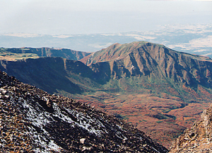 昨日吹雪きだったなんて カンケーないない!って感じの 秋晴れです。 稲倉に続く稜線が面白いと思いません? 鉾立が遠くに見える。 ←雪の稲倉岳はこっち