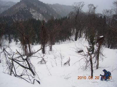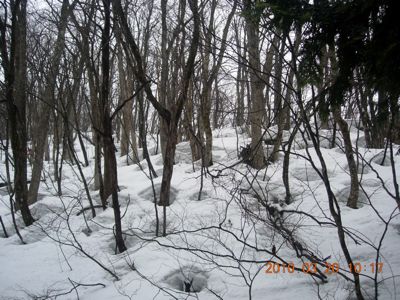 気温が高いこともあり、下山はずぼずぼとかなり雪を踏み抜いた。