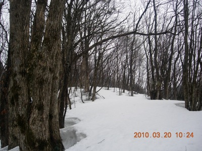 伐採をまぬがれたブナ林が広がっていて、空間が明るく感じられる。