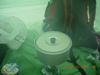キックステップで登らないと、ずり落ちてしまうような斜面を