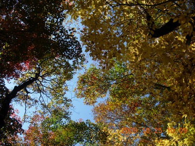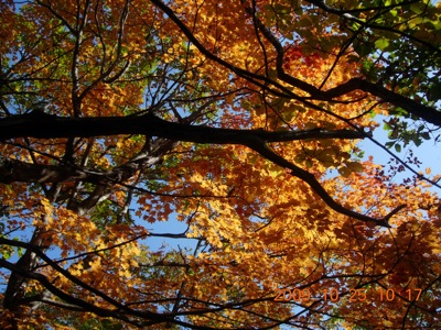雲一つない空に、紅葉まっさかり。
