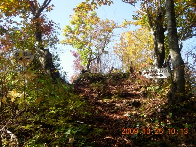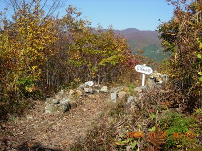 看板が見えて、山頂アチラとのこと。 なんだ〜。山頂じゃなかったと、がっかりしながら 進んで行きましたら・・・・。