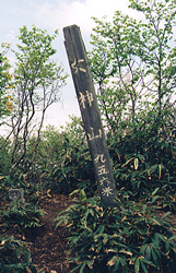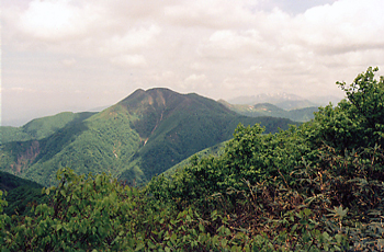 頂上は視界が開けないので 10mほど先の秋田側へ回る。 すると!どうだ! ひゃっほー。真昼岳が あんな近くに! その奥には和賀山塊。 仙北平野の見晴しも最高!