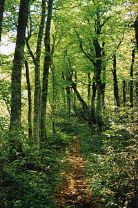 帰りは、1周できるコースがあるので そちらへ。 セミの声、カエルの声、キジバトの声、 そしてブナの森。 柔らかでやさしい世界です。 まさに「女神」という 名前がぴったりの山です。
