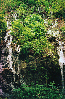 やがて、降る滝と姫滝に。 手前に姫滝がありその奥に まさに降ってくる大迫力の降る滝。 はんぱじゃありません! 女神の意外な一面です。