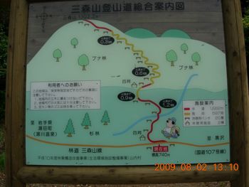 湯川温泉手前から右手に入る。「三森山登山口」の小さな看板がある。