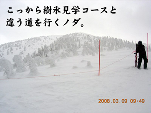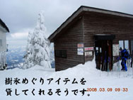 モンスターがいるうちに森吉のモンスターが見たい。ふと、思い付いて横手から2時間以上を費やして北秋田市へ。単独ということもあり、短時間コースとはいえ装備は、GPSでしょ。ルート旗でしょ。25000分の1地形図&コンパスだ。磁北線も引いたし、しっかり使い方もマスターしたし!あとは、経験値。阿仁スキー場の樹氷祭は3月いっぱいまでと何かで読んだが、ゴンドラ終点で係の人がいるのは本日までだそうな。ゴンドラ終点でスノーシューや長靴もレンタルできるそうです。 |