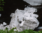 七つ釜の滝壷を覗き込むと 崩れたばかりの雪渓があった。 迫力。