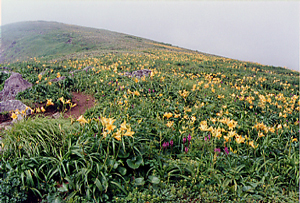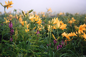 ニッコウキスゲ以外の花も たくさん咲いてるのだが、 名前が分からない・・・・。 いずれ、調べよう。 2005年現在、この大群落に 遭遇できたのは 後にも先にもこれっきり。