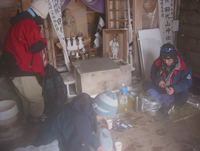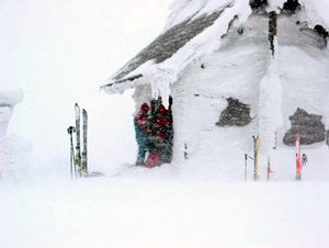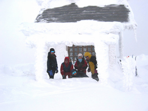 吹雪を逃れて中に入るとほっとする。 それでも気温はマイナス12度ぐらい。 みんなで喋ると白い息だらけになって温泉状態。 6人で結構余裕で座ることができる。 Sさんが持ってきたワインをホットにして乾杯! いいねえ。今度はフォンデュとかやりたいな。 室温はみんなのガスストーブで上がったけど 冷え性の私は手足がかじかんできた。