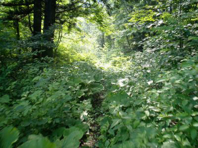 踏み跡がかろうじて分かる程度で、まるで廃道のような