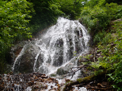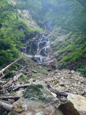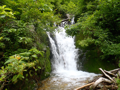 下二股から左へ入って15分ほどで、小滝が出てくる。奥にもう一段あって