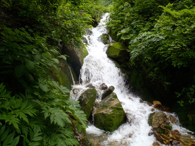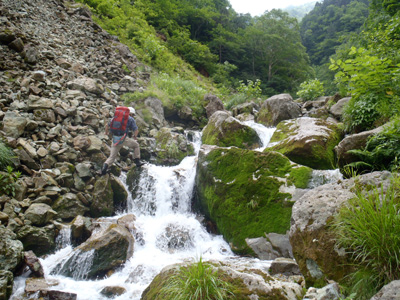 脚にぶつかる久々の沢水の水圧に慣れず、