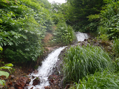 稜線を過ぎ、沢が出てくると、再び雷が唸り始める。