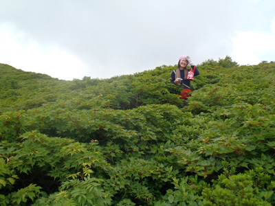 最初はミズが茂り、やがて胸まである秋田フキに、