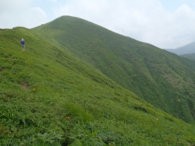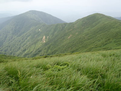 さて、山頂までの稜線はさぞかし気持ちのいい草原歩きかと思いきや、