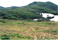 焼石沼から流れ出る小川が 自由奔放に走るメルヘンな登山道を過ぎ、 いよいよ焼石岳を正面に仰ぎながらラストスパート。