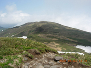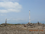 この時間となると、山頂に残る登山者は私を含めて3人。ほとんどの人はもう下山に取りかかっていた。午前中に登った人の話では、鳥海山が見えたそうだけど、もはや雲のなか。秋田側は快晴で、岩手の太平洋側は雲海になっている。 あと1時間早く起きれば良かったな。そうすればもう少しゆっくりできたのに。 | |