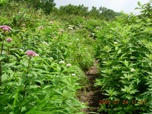 視界が開けると同時に花々もようやく姿を見せ始めてくれました。今回は蚊の大歓迎はなかったけれど、たくさんのミツバチが一生懸命に花の蜜を集めてました。それが、なんともプリティー。毛で覆われているので何だかぬいぐるみみたいに思える。