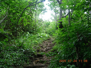 倉方を過ぎるとどんどんブナの木が小さくなっていくのが分かる。頭上も明るくなってきて、やっと森をぬける。