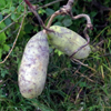アケビ科。花はもう終わり収穫の季節である。里山などを歩いていて見つけられたらラッキーだ。 紫色になって成熟するとタテに割れ、開けてみれば葛餅をさらに柔らかくしたような、甘い胎座が黒い種を包んで現れる。 そしたら種をあたりにまき散らしながら仄かな甘みを楽しむのだ。山形あたりではこの厚い果皮を利用した郷土料理がある。 試しに私も調理して食べてみたがこれが苦い。ちょうどゴーヤのようなほろ苦さがある。食べ方もゴーヤのような調理が合っているようだ。 山で見かけたらぜひ、甘い部分だけでなく苦みも楽しめる大人になってみてください。