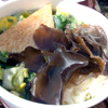 ブナやカエデなど広葉樹の倒木に生える。食感がクラゲに似ていることから木に生えるクラゲでキクラゲ。ヒラヒラの黒い姿は見間違えようがない。シロキクラゲといって半透明な ものもあり、こちらは数も少なく貴重。キクラゲは鉄やカルシウムが他のキノコより多く含まれ、また植物性コラーゲンがこのコリコリプリプリに含まれる。食感だけが 取り柄のように思っていたが、意外にも栄養成分がすばらしい。先日、山で採って山頂ラーメンの具とした。これぞ地産地消。