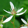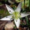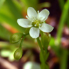 モウセンゴケ科。食虫植物。日当りのいい湿った場所、沢壁などで見かける。ホワホワと生えた赤い毛からネバネバを 出して虫を捕らえる。湿原や沢などでは不足し勝ちな栄養素をこうして虫から得るのである。 この植物は食虫の葉っぱの部分ですでにキャラが濃いので満足して眺めていたのだが、なんとこんなかわいい花が咲く。 しかも5〜6ミリのちっさい花。あまりにキャラ立ちした葉と可憐な花のギャップが大きくて、てっきり別々の植物かと思っていた。