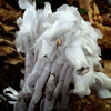 ツツジ科ギンリョウソウ属。漢字では「銀竜草」。花の形が竜に似ていることが名前の由来。別名「幽霊草」。薄暗い腐食地に、うつむいて咲く姿は優美な銀の竜というより「うらめしや」がしっくりくる。何かの漫画でギンリョウソウの下には死体があると書かれていたのを私は鵜呑みにしていて、天気の冴えない一人歩きの山の中で初めてこの花を見つけたときぎょっとしたものだが、気がつけばあちこちにこの花がうつむいているではないか。こんなに死体が埋まっているのはおかしいと、ようやく真実を知るに至った。