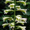 ユリ科。ウバユリ属。山では様々な植物に感心させられるが、このオオウバユリのでかさには思わず車を停めてかけよったほど驚いた。山中よりもアプローチ中によく見かける。人の背丈ほどの高さになり、四方八方に大きな花が段々になって付く。ユリといえば優雅で気品のあるイメージだが、この花には突き抜けた豪快さがある。なぜこんな威勢のいい花が「姥」なんだろうと不思議だったが調べると、花が咲く頃には「葉」が落ちてしまうので「歯のない」姥にかけたのだそうだ。名付けた人はきっと、オヤジギャク連発のひんしゅくおやじだったことだろう。
