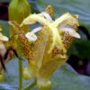ツリフネソウ科。黄色バージョンのキツリフネと花の形は一見そっくりだが、葉っぱの形など相違点が多い。 なによりも花の後ろに伸びる距の先端がクルンとまくれるのが、キツリフネには ないチャームポイント。このクルンの中に蜜がたくさん溜まっている。訪れる蜂などは、このクルンを目指して花に潜り込み 花粉をたっぷりまとって次のクルンへと飛び回り受粉が媒介されるわけだ。なかには頭のいい蜂もいて ダイレクトにこのクルンに穴をあけて蜜だけ頂いて行くのだそうだ。それに嫌気が差してか知らないが七時雨山麓の ツリフネソウはこのクルンスタイルを放棄して咲いていた。