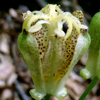 リンドウ科。9〜10月、湿原や小川のほとりなどで見かける2年草。1年目は葉だけで過ごし、2年目に茎を伸ばして 2センチほどの花を咲かせる。名前の由来は花びらにある2つの黄色い丸い模様で、これを夜明けの星に見立てたそうだ。そう言われて 見れば、先端の細かな黒い点は明けゆく闇の名残にも思える。この花の写真を撮ろうとすると、蟻が花びらをうろうろして なかなかどいてくれない。この花の明けの明星はどうやら蜜を分泌するようで、そこにやってくる昆虫を介して受粉をする仕組みのようだ。 人も蟻もこの星に魅了される。